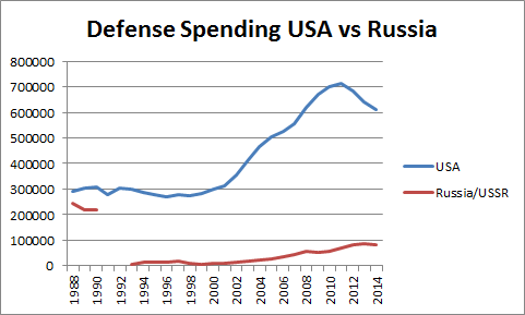 Defense Spending USA vs Russia Benjamin Studebaker November 28, 2015 Published by Benjamin Studebaker View all posts by Benjamin Studebaker Published November 28, 2015