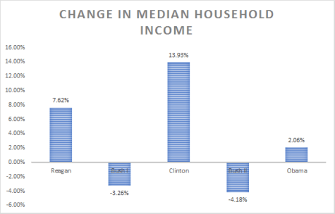 Under Bush, real median household income in the United States fell by 4.18%. This was the worst figure of any recent president: