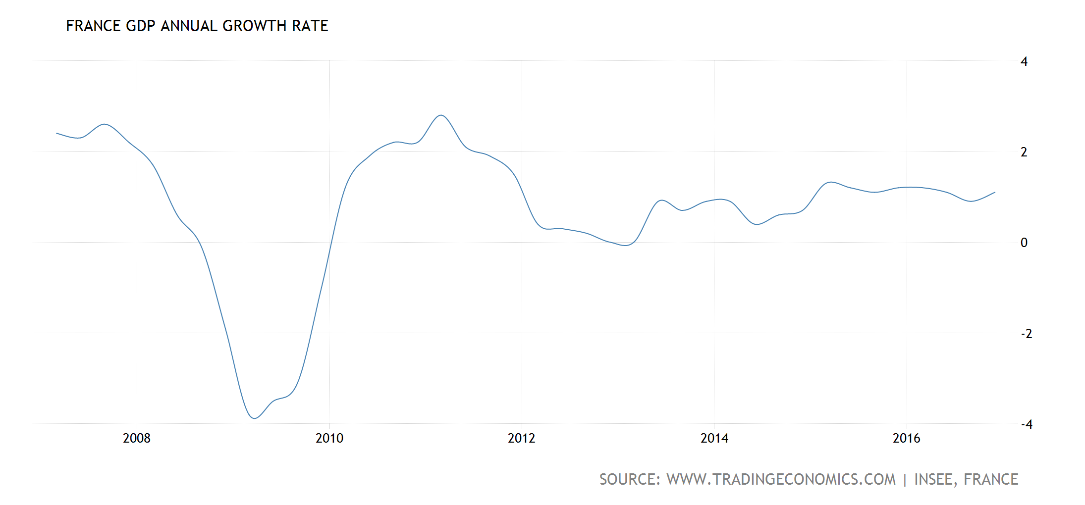 France GDP Growth Benjamin Studebaker April 13, 2017 Published by Benjamin Studebaker View all posts by Benjamin Studebaker Published April 13, 2017