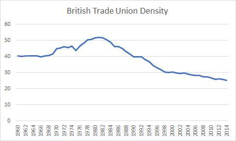 UK Trade Union Density Benjamin Studebaker May 3, 2017 Published by Benjamin Studebaker View all posts by Benjamin Studebaker Published May 3, 2017