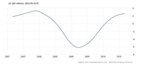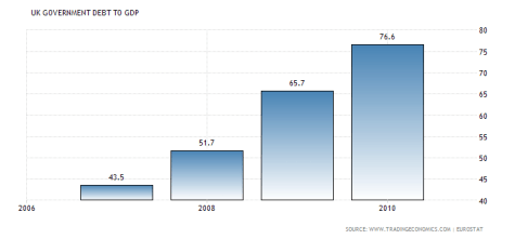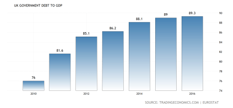 This meant that Gordon Brown’s Labour government had to bailout a lot of banks and do a lot of economic stimulus to rescue Britain’s economy. This required it to run up the UK’s debts: