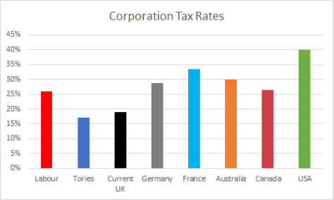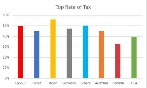 Labour promises to pay for its spending with tax increases which only hit the top 5% of earners and which do not raise British rates above normal rich country levels: