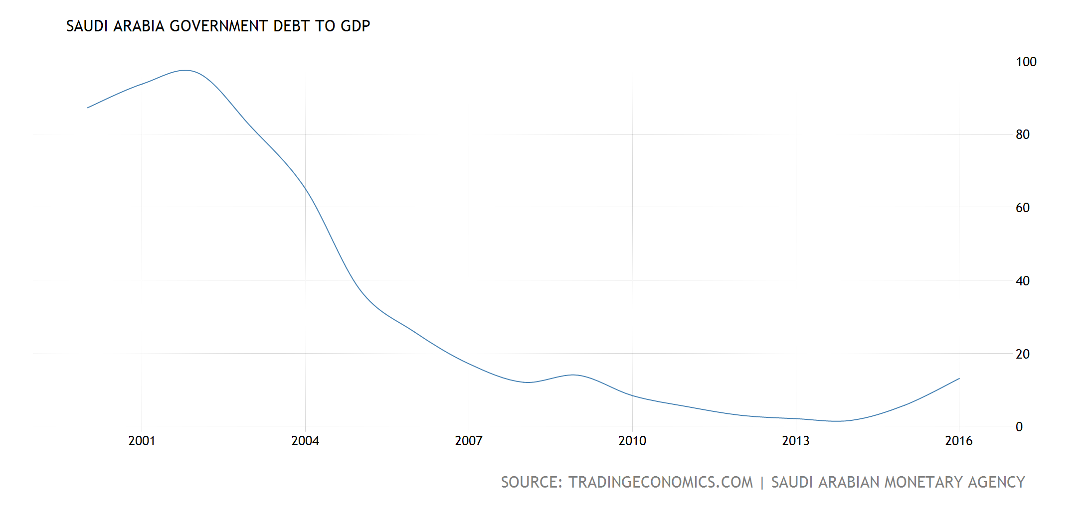 Saudi Arabia Debt 2000-2017 Benjamin Studebaker August 13, 2017 Published by Benjamin Studebaker View all posts by Benjamin Studebaker Published August 13, 2017