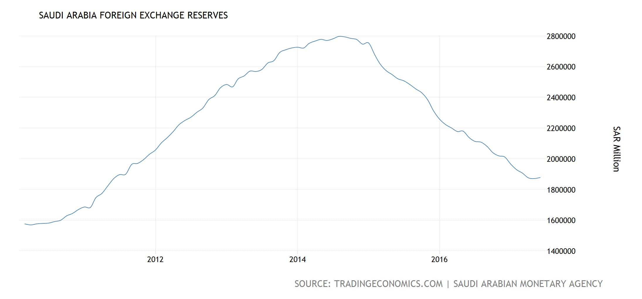 Saudi Arabia Foreign Currency Reserve 2000-2017 Benjamin Studebaker August 13, 2017 Published by Benjamin Studebaker View all posts by Benjamin Studebaker Published August 13, 2017