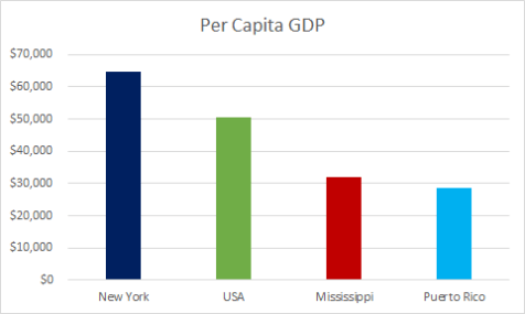 We don’t have time for this. Puerto Rico is in deep pain, and has been for a decade, and statehood is the best way to free Puerto Rico from the unreasonable constraints it faced even before a series of monster hurricanes devastated the island and its infrastructure. We could give the territory a federal bailout, but that would just be a temporary fix–the truth is that Puerto Rico has long trailed the rest of the United States on far too many economic indicators.