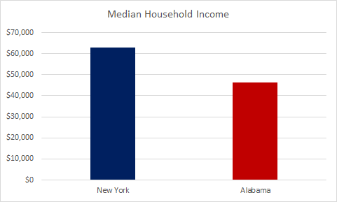 Alabama vs NY Median Household Income Benjamin Studebaker December 18, 2017 Published by Benjamin Studebaker View all posts by Benjamin Studebaker Published December 18, 2017