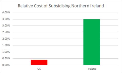 As Britain marches ever closer to its date with Brexit destiny, I hear some people arguing that Brexit could lead to Irish reunification and that this would be a good thing. But if you evaluate the arrangement Northern Ireland has with the UK, it’s clear that it is in the material interest of the North Irish to remain. The UK gives Northern Ireland a very good deal, and it is highly unlikely that the Republic of Ireland would be able to offer a competitive package.