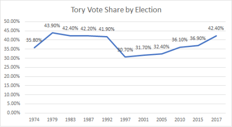 The Labour Party was able to increase its vote share to about 40%, a level which has often historically been enough for Labour to form governments on its own.