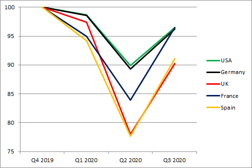 As the figures for the third quarter come in, I am growing very worried about the future of Europe. Coronavirus has unleashed a disaster there that is hard to comprehend. The numbers are extraordinarily terrible. Let me show you what I mean.